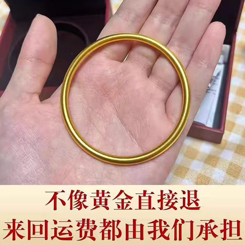 古法传承手镯女越南沙金仿真黄金素圈纯实心正品叠带结婚手链首饰
