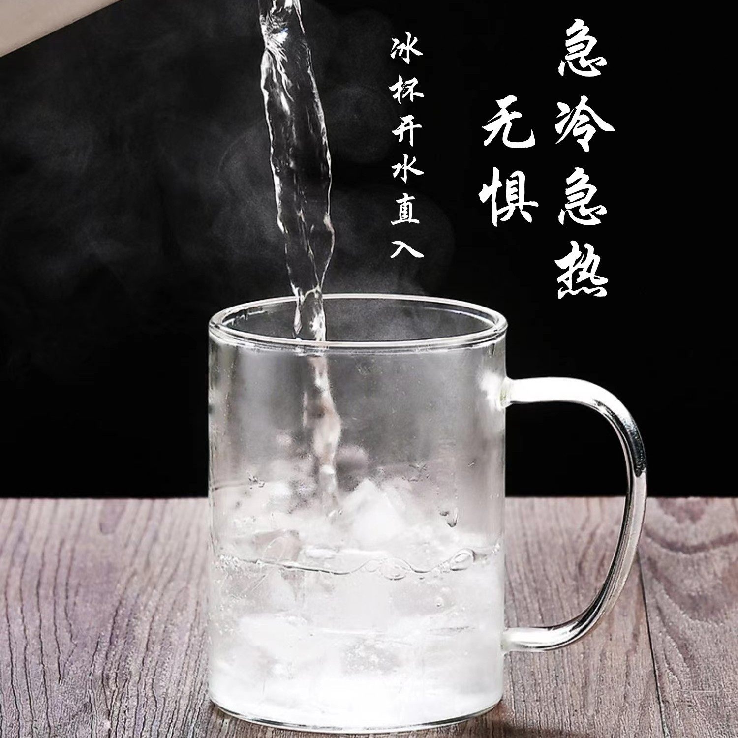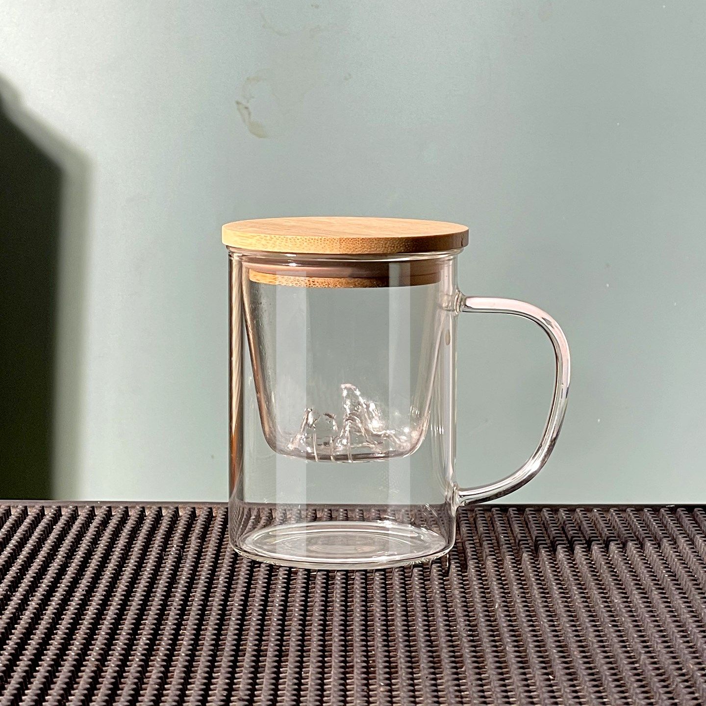 高硼硅办公泡茶杯茶水分离三件杯玻璃竹盖双层观山杯彩把花茶杯