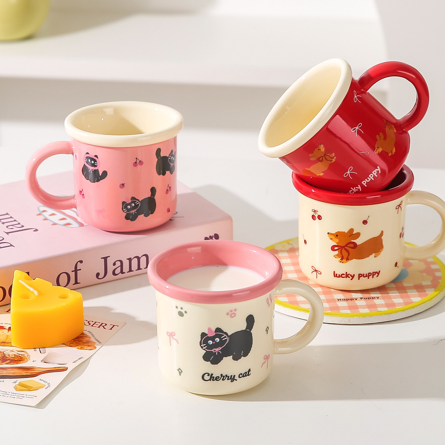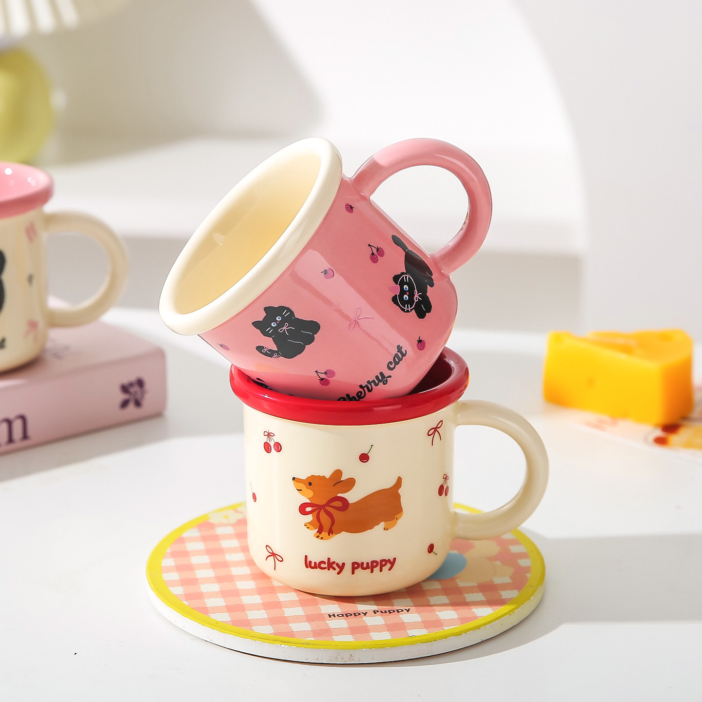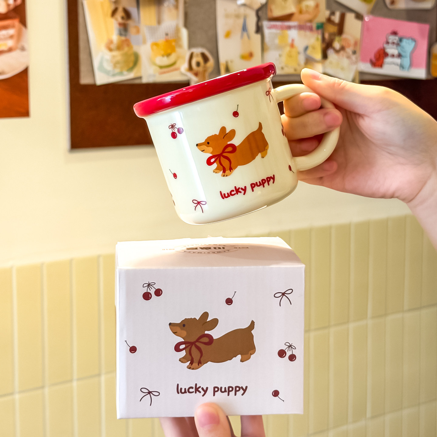 言仓线条小狗马克杯复古陶瓷水杯可爱儿童男女情侣圣诞生日礼物
