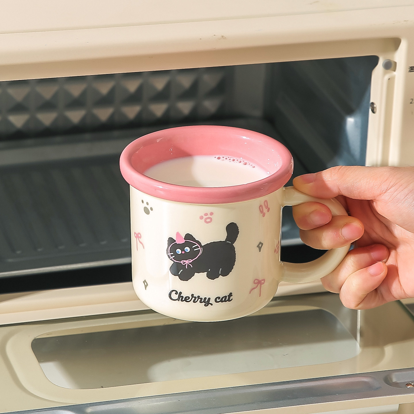简约团团猫咪杯情侣早餐杯马克杯女生可爱卡通大容量杯陶瓷咖啡杯