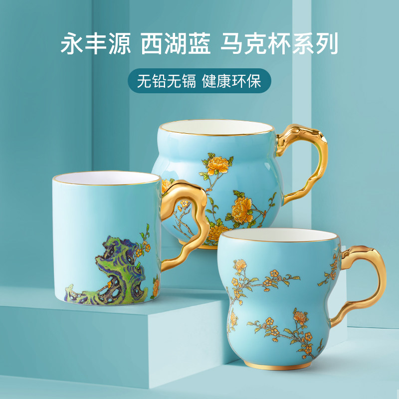 【热销爆款】永丰源西湖蓝马克杯陶瓷水杯杯子轻奢礼物高颜值礼盒