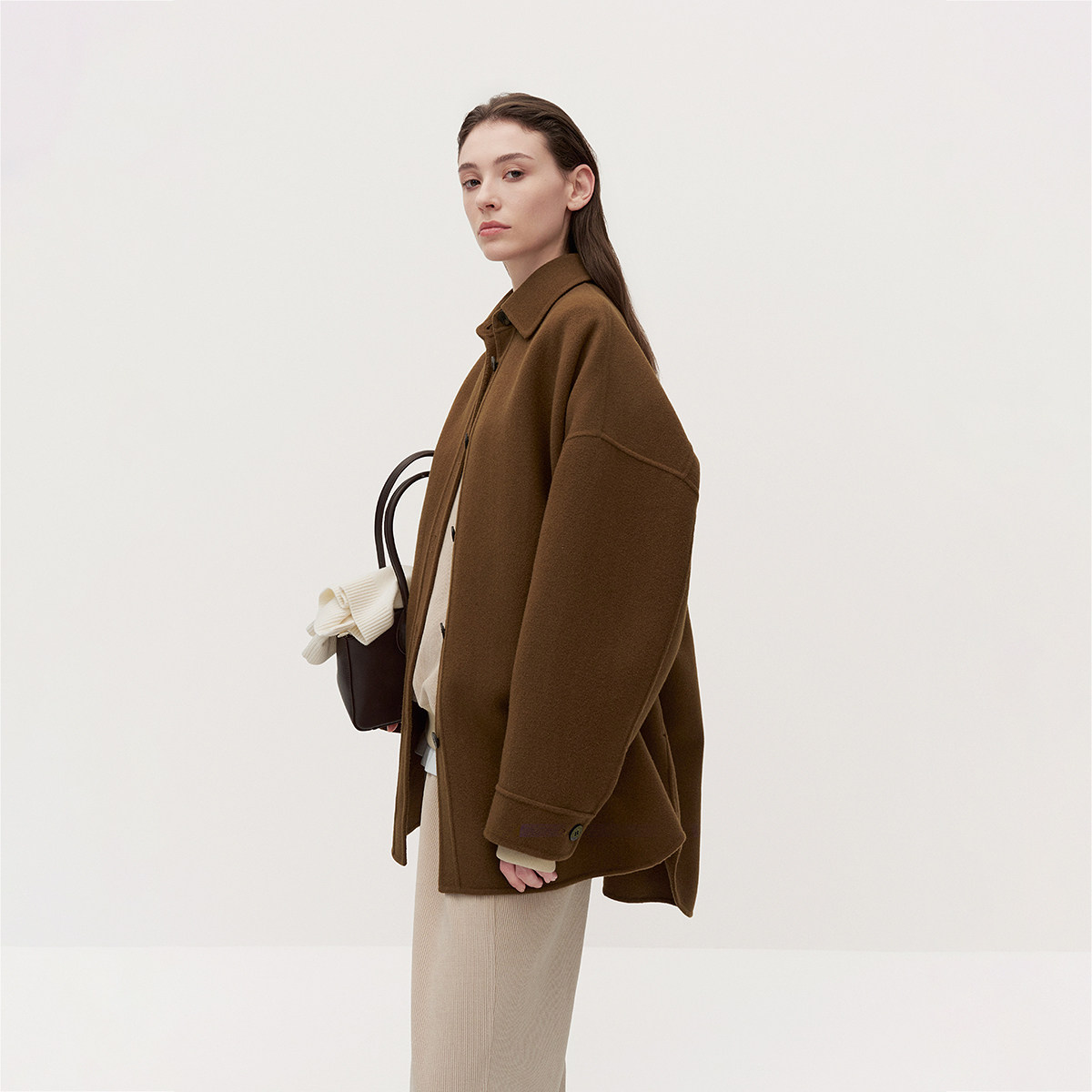 【季末折扣】欧时力 澳大利亚100%羊毛双面呢廓形外套女秋冬新品