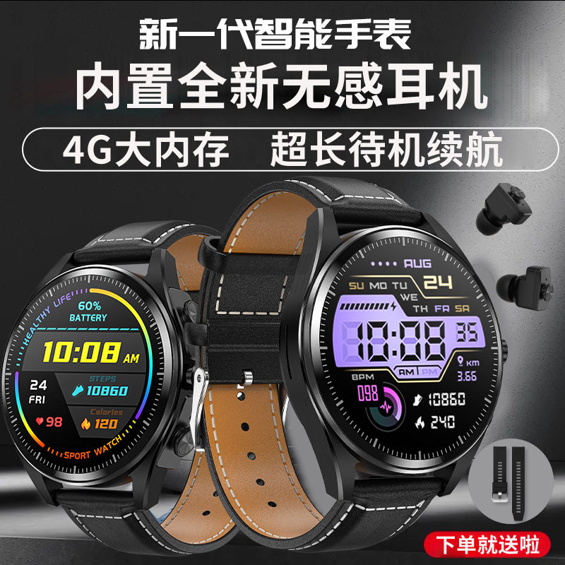 多功能超薄TWS蓝牙耳机智能手表二合一通话心率运动防水手环计步