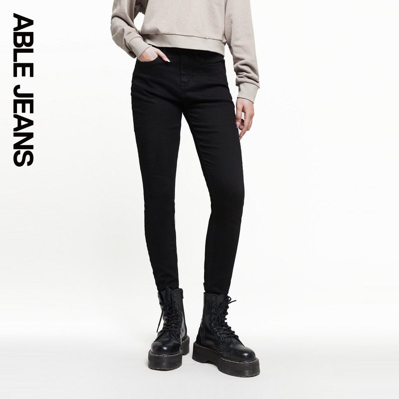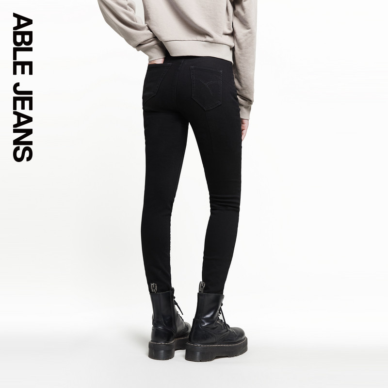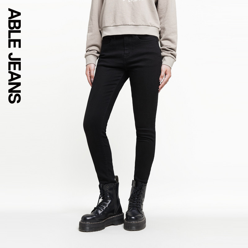 ABLE JEANS【提臀裤】新款女士黑色高腰紧身提臀牛仔裤女901544