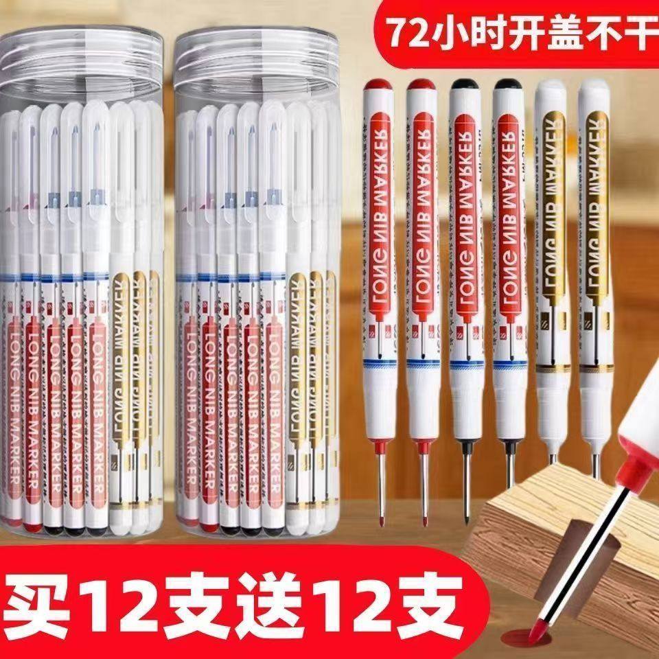 长头记号笔油性木工专用瓷砖特殊用途工地长嘴黑色深孔划线细头