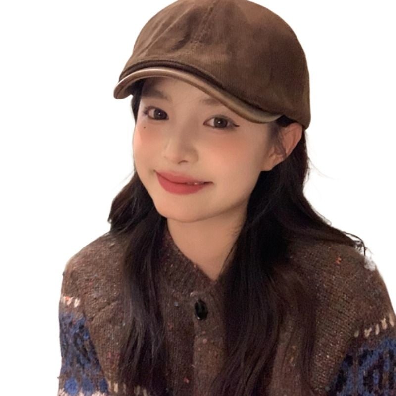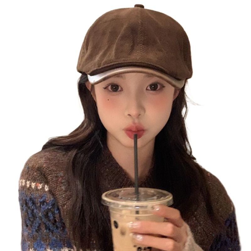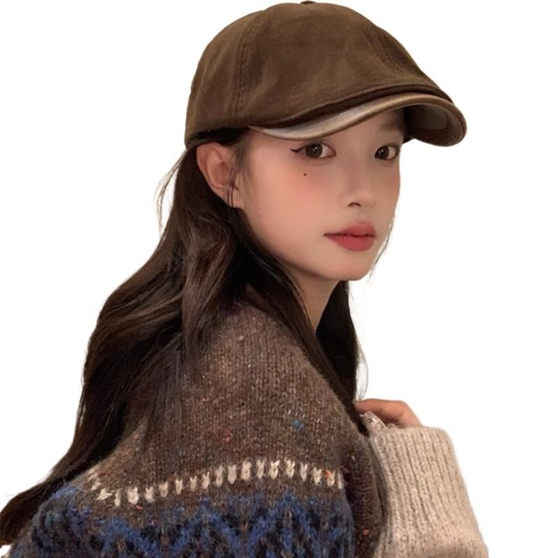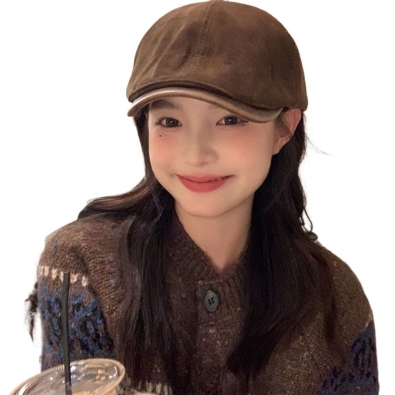 我的头不圆复古前进帽子百搭日系报童鸭舌帽女秋季咖色卡其色休闲