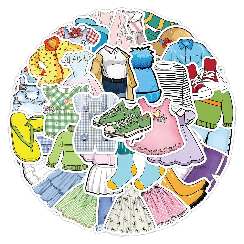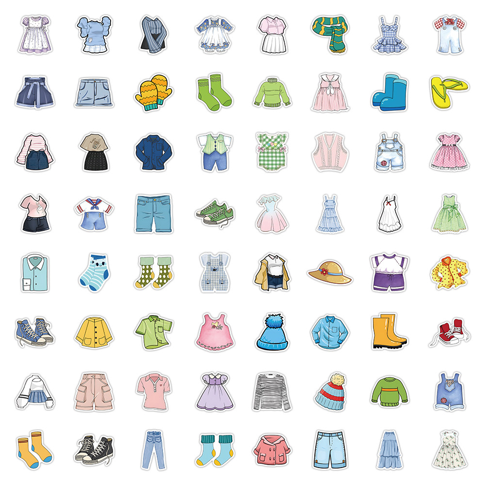 256张现代服装贴纸卡通裙子夹克衣服鞋子防水贴画装饰行李箱头盔