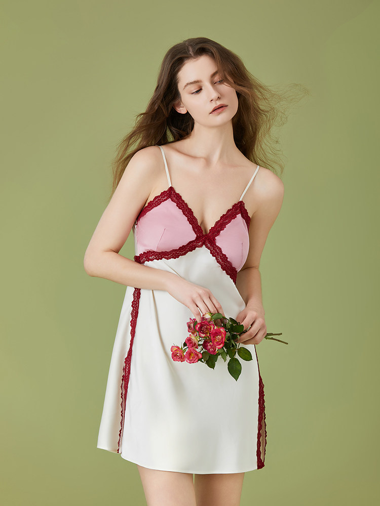 睡裙女夏季吊带性感薄款蕾丝睡衣孕妇带胸垫纯棉莫代尔宫廷公主风