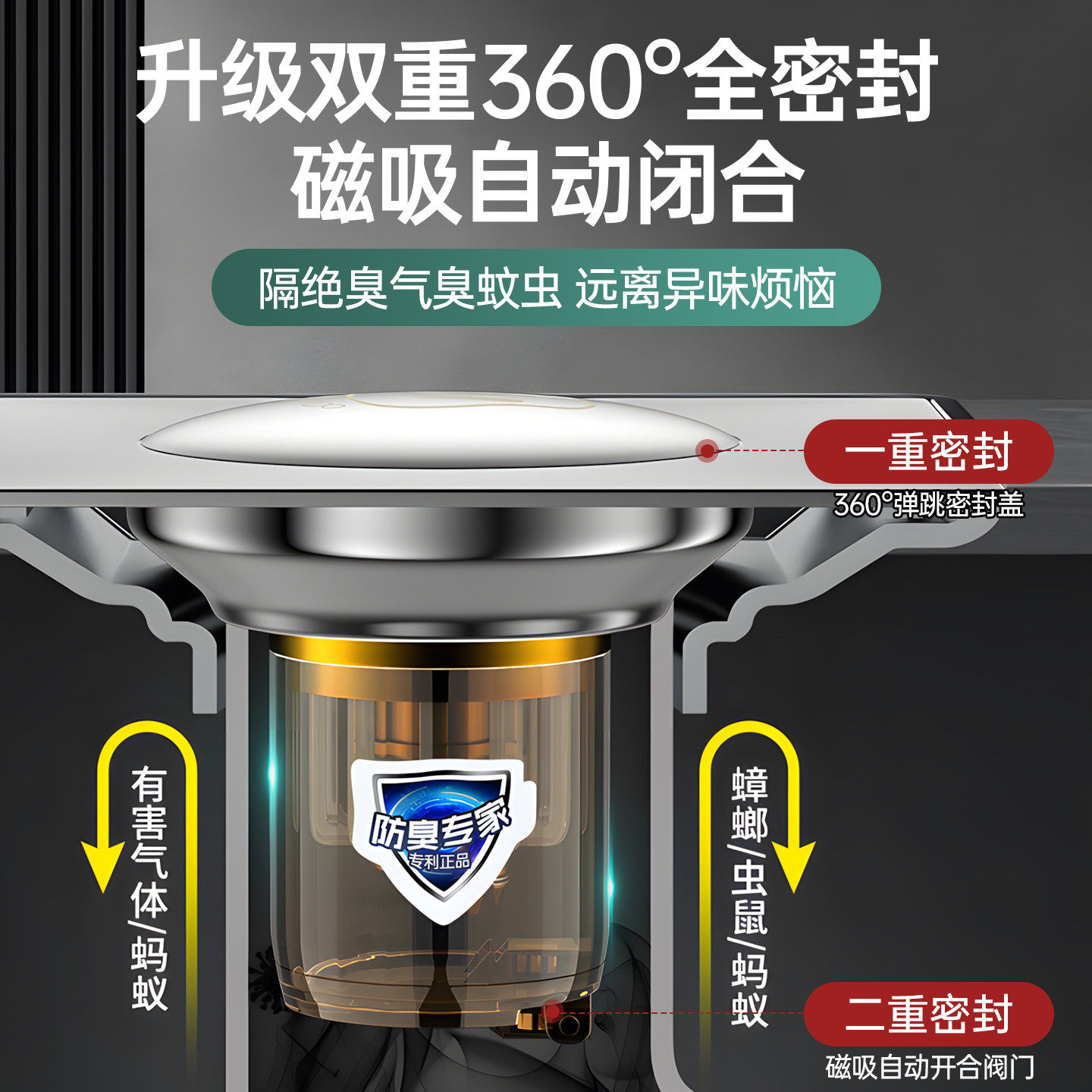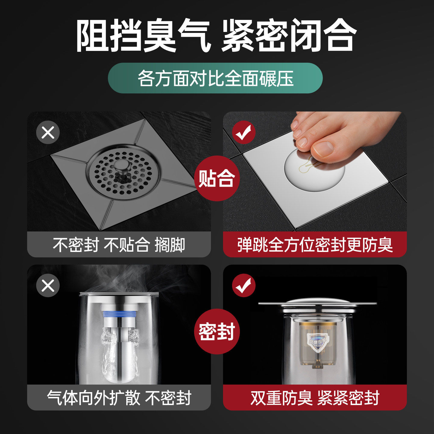 卫生间地漏防臭器弹跳芯密封盖下水道防返臭虫神器通用按压脚踩式