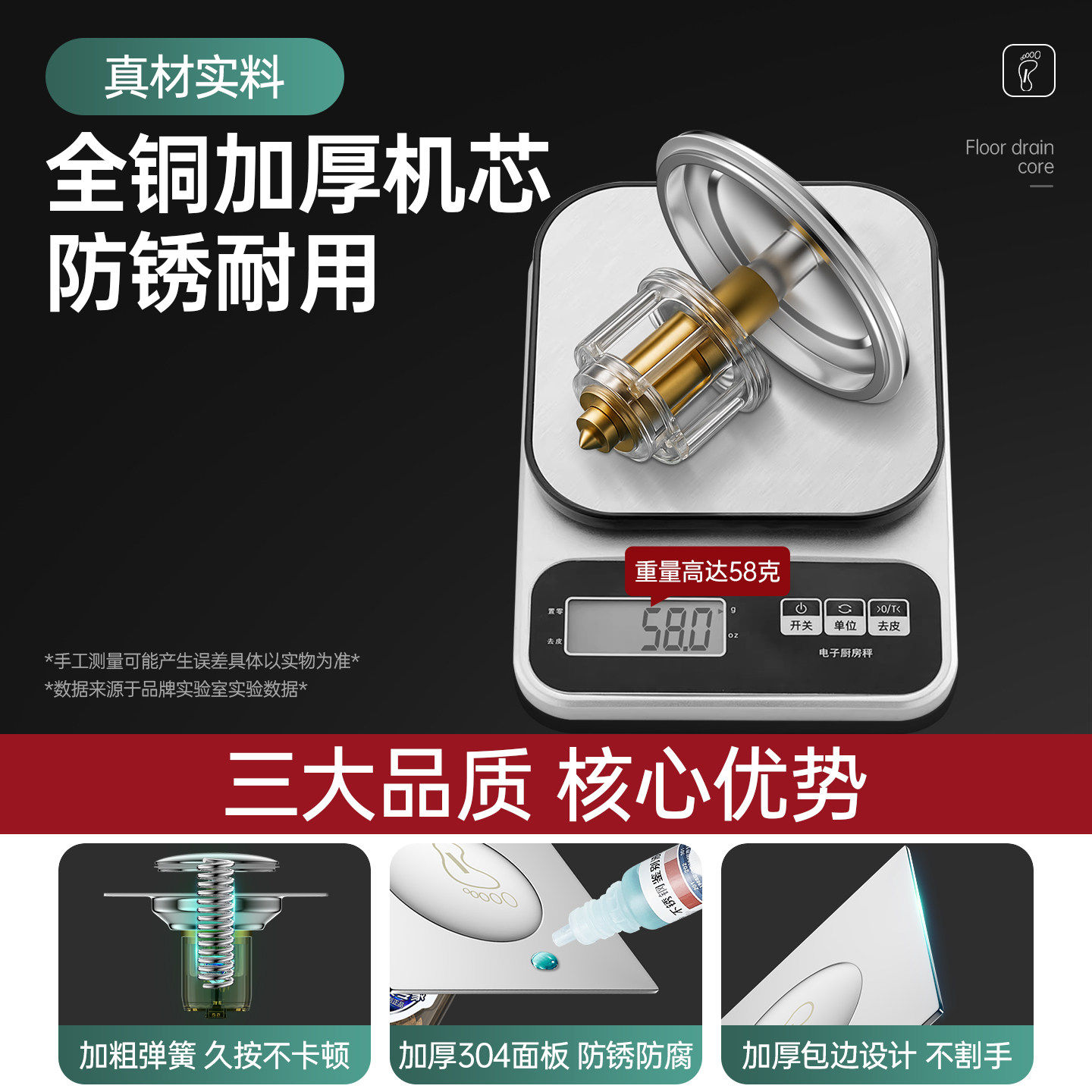 地漏加厚不锈钢防臭五金过滤芯卫生间阳台全铜下水道洗衣机浴室