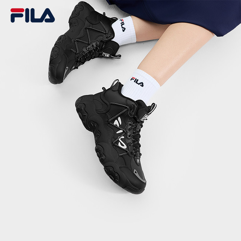 FILA 斐乐女鞋高帮猫爪6代老爹鞋运动鞋复古春新款革面保暖休闲鞋