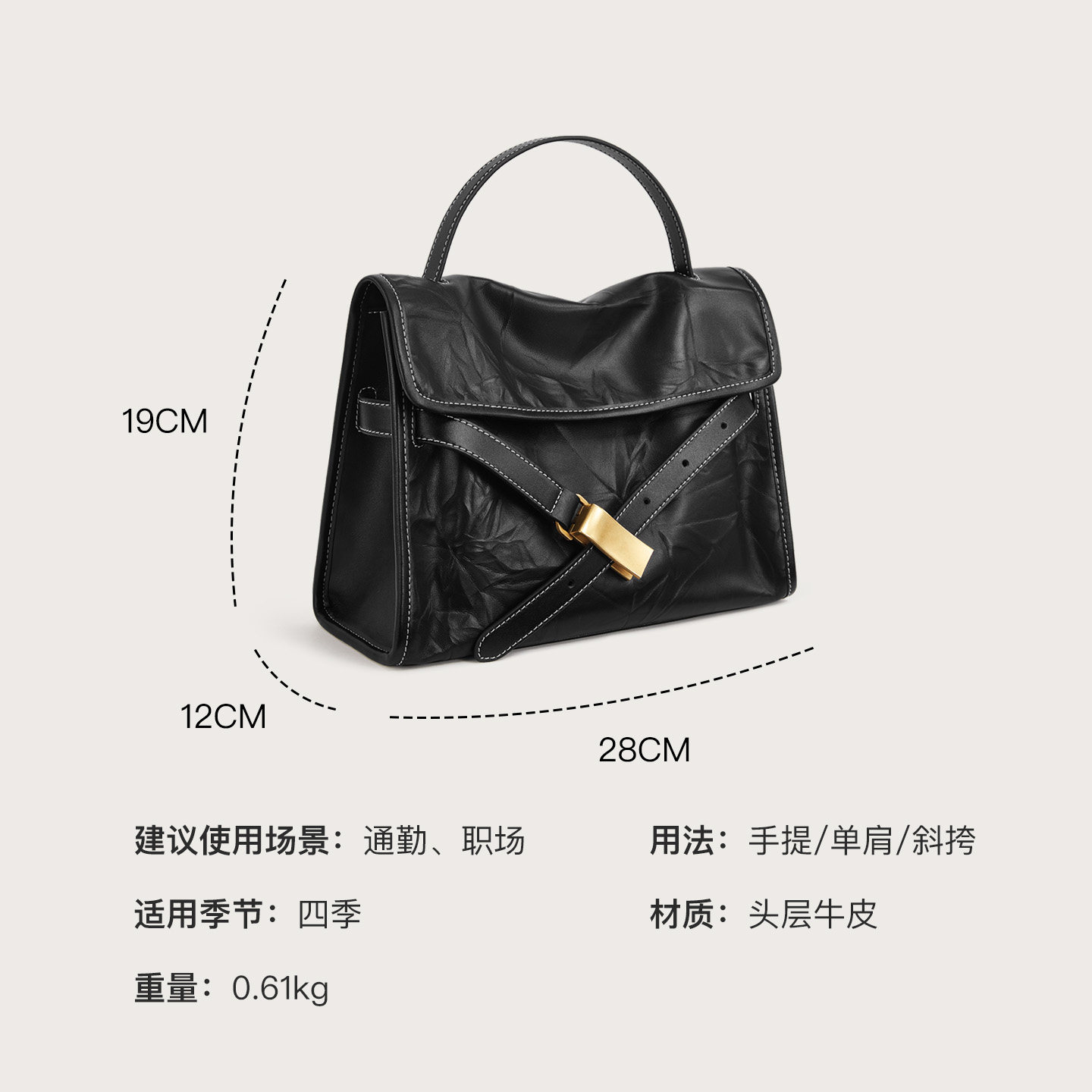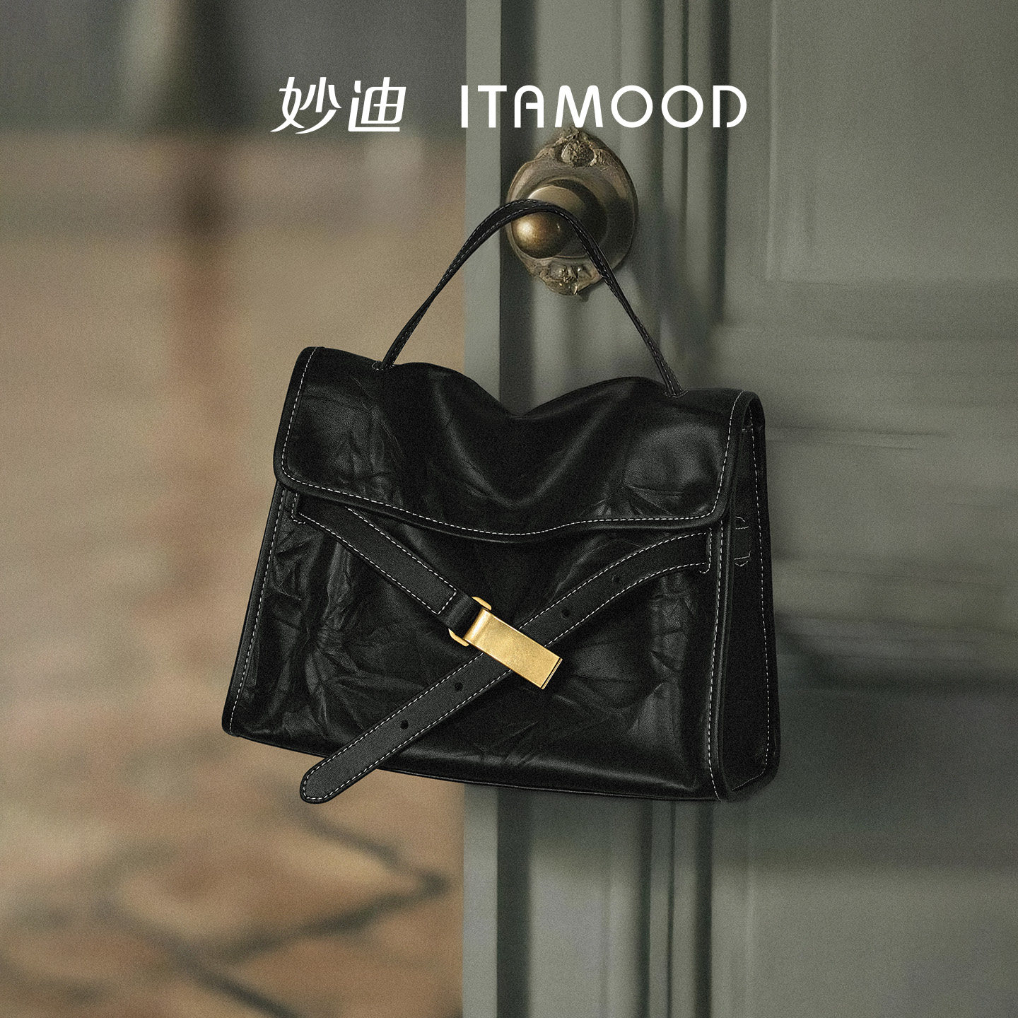 妙迪职场通勤手提袋新款真皮高级质感黑色包包大容量单肩斜挎包女