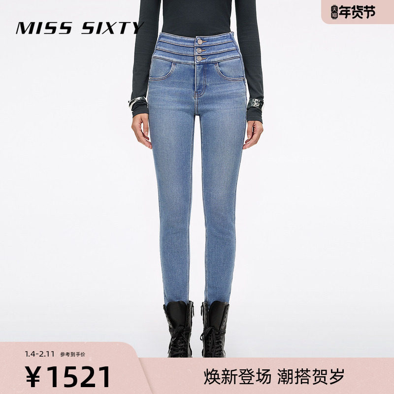 【保暖复合绒】Miss Sixty2025冬季新款牛仔裤三环高腰加厚靴裤