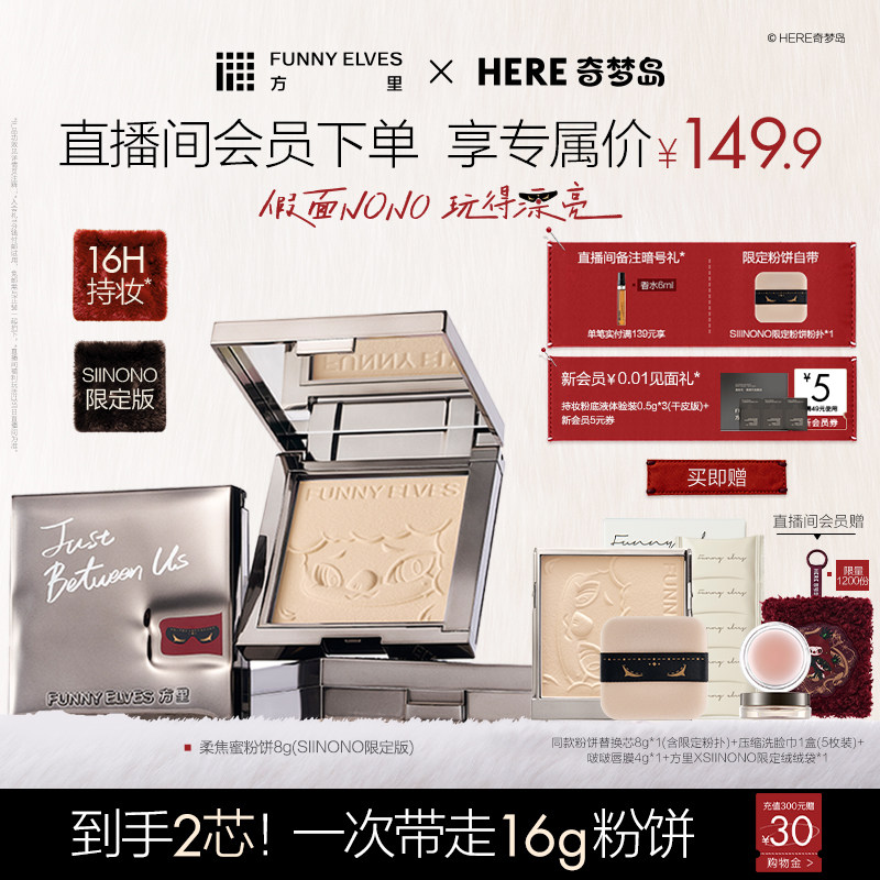 【新年礼物】funnyelves方里散粉定妆粉饼控油持久持妆遮瑕磨皮