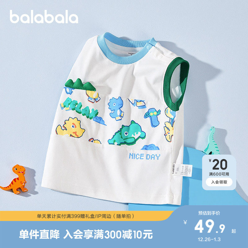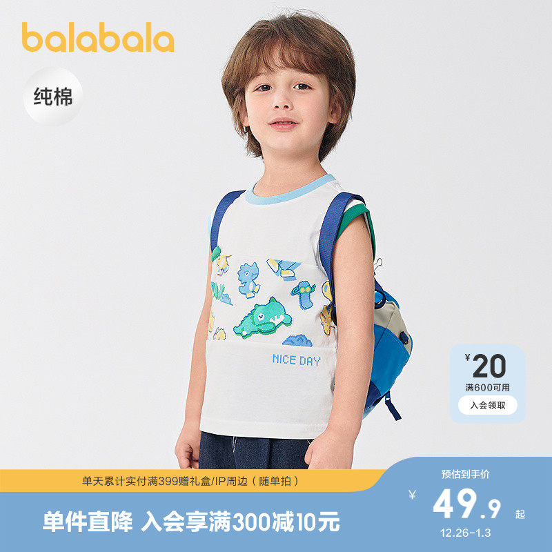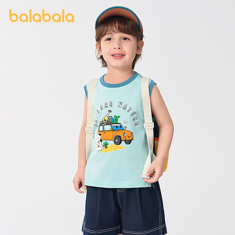 巴拉巴拉童装儿童背心纯棉无袖上衣男童夏装2025新款时尚百搭洋气