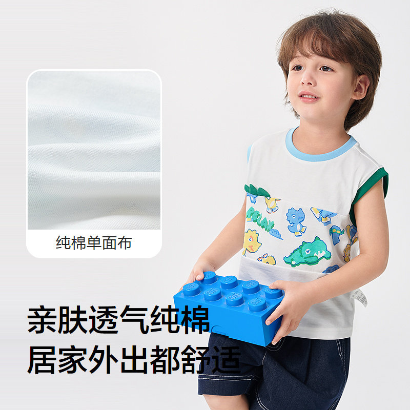 纯棉宽肩背心,多彩恐龙印花