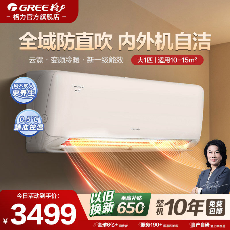 格力空调官方旗舰云霓大1匹一级能效变频冷暖家用挂机冷静王同款