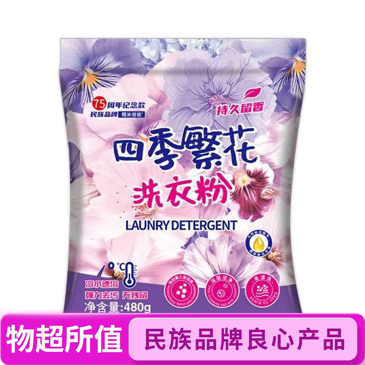 四季繁花洗衣粉持久留香除菌除螨强效去污学生宿舍正品强力速溶