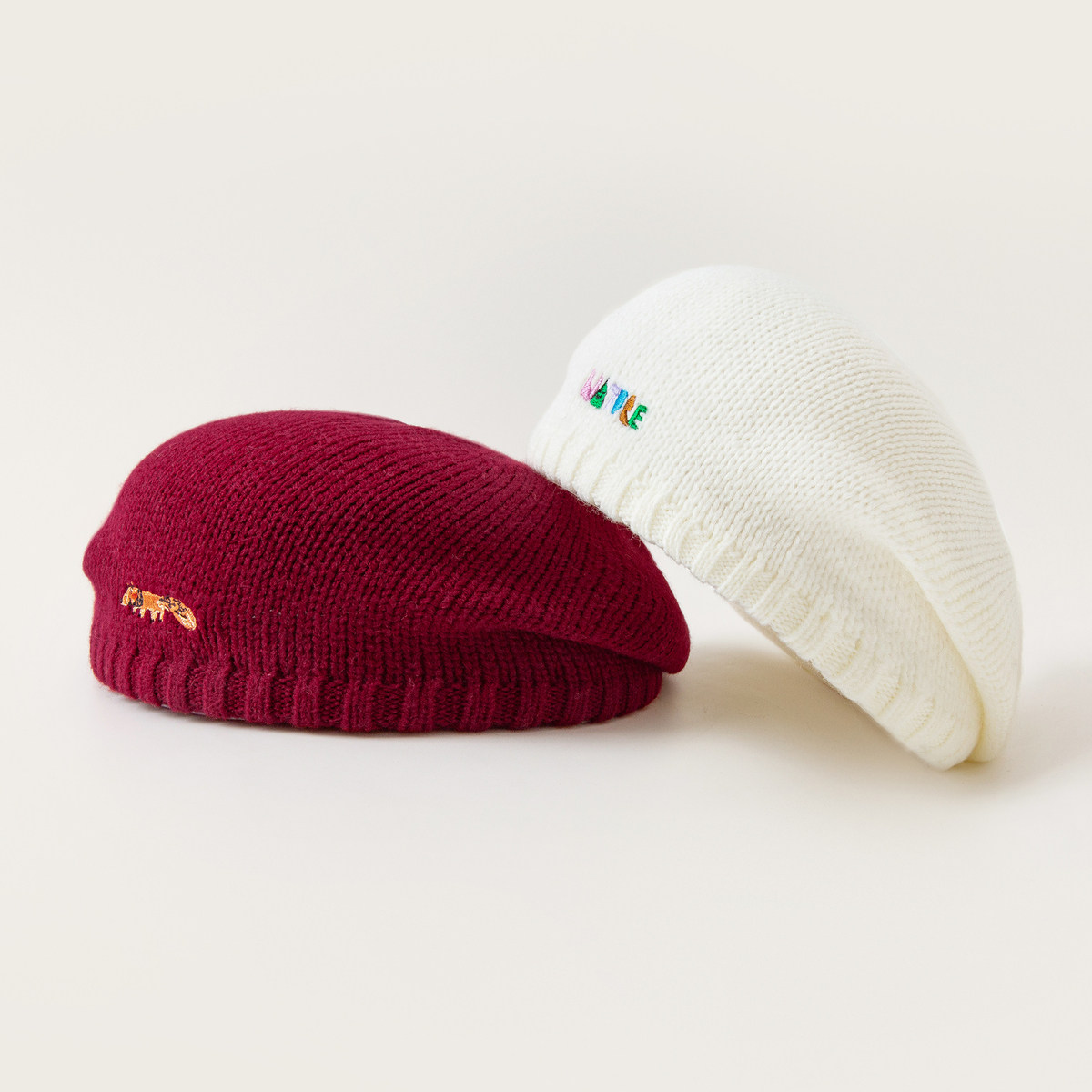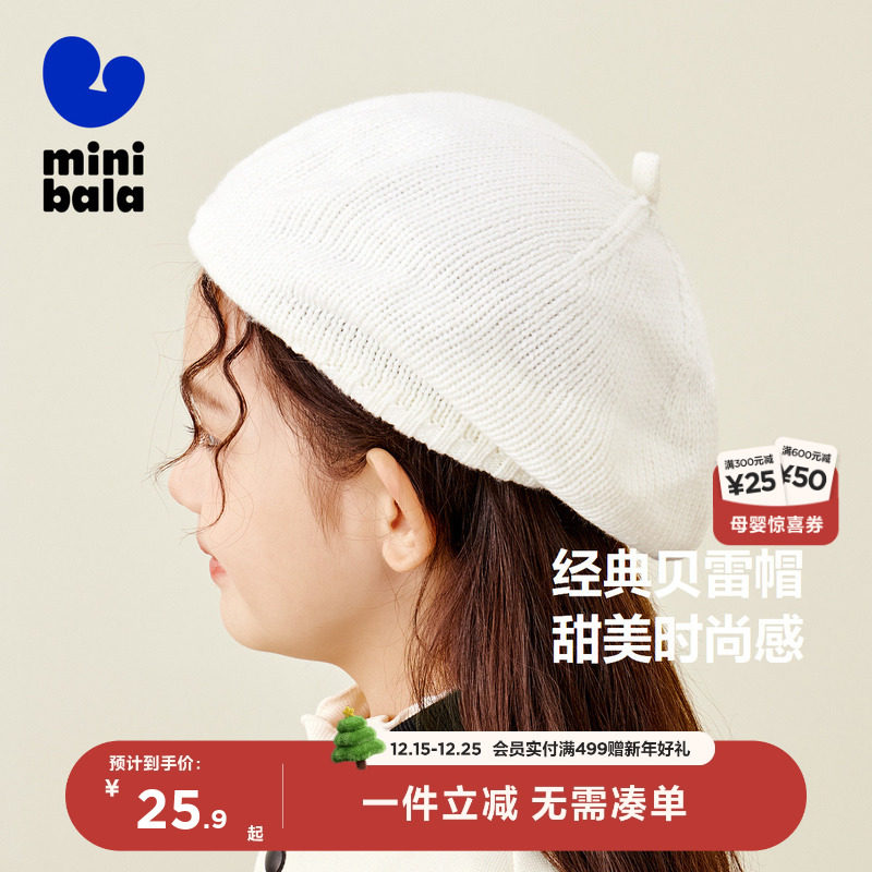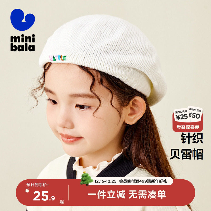 迷你巴拉巴拉春秋新款女童绣花甜美贝雷帽宝宝保暖时髦针织帽