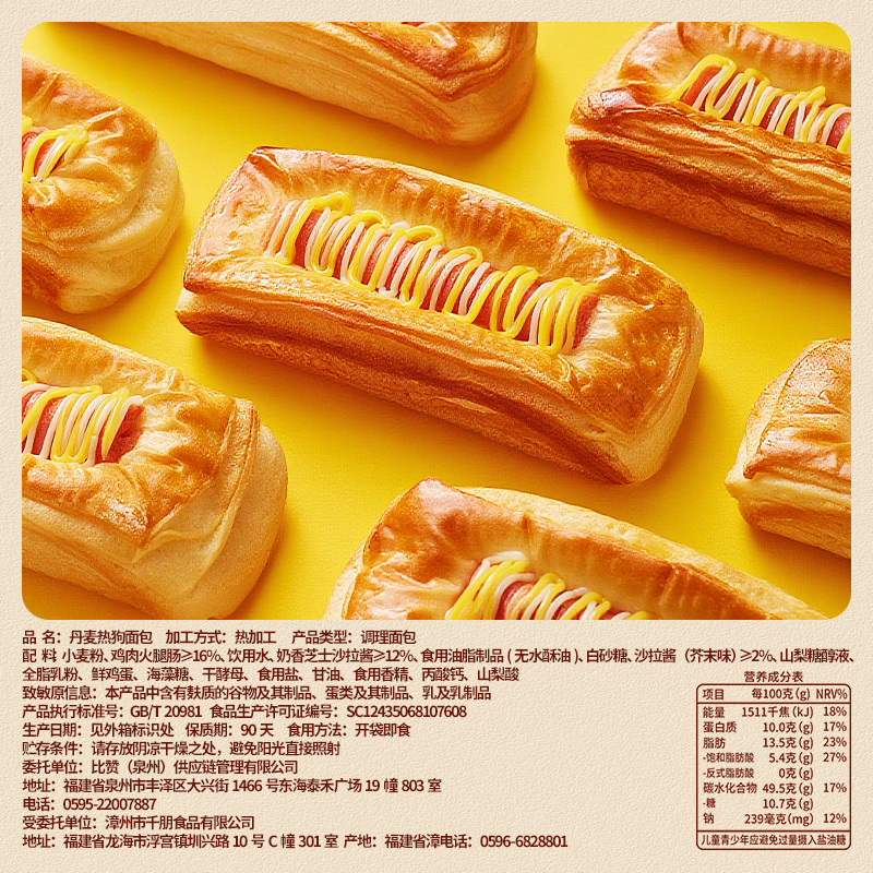 比比赞丹麦热狗火腿早餐面包糕点整箱零食休闲食品营养早点代餐BY