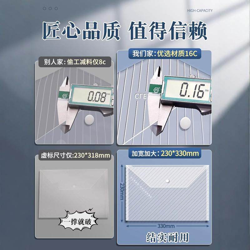 A4文件袋透明塑料大容量按扣试卷收纳袋学生用档案资料袋文件夹包