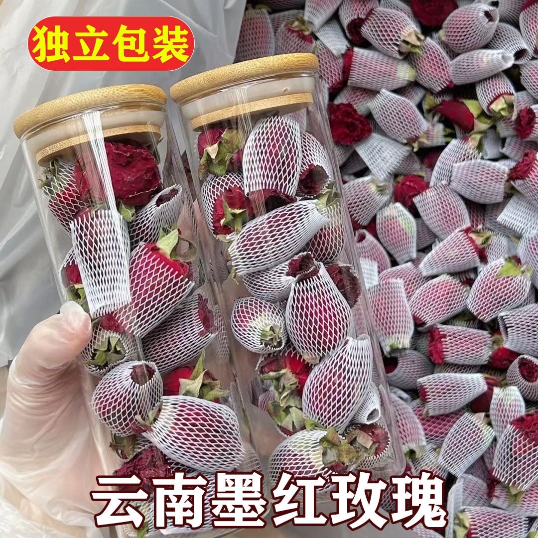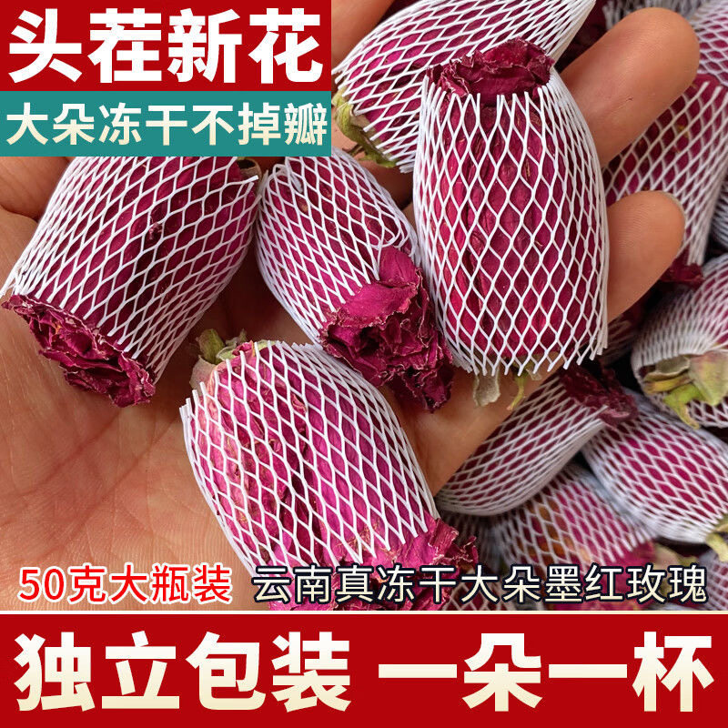 冻干墨红玫瑰花茶云南大朵特级花茶一朵一杯重瓣玫瑰花冠泡水新鲜