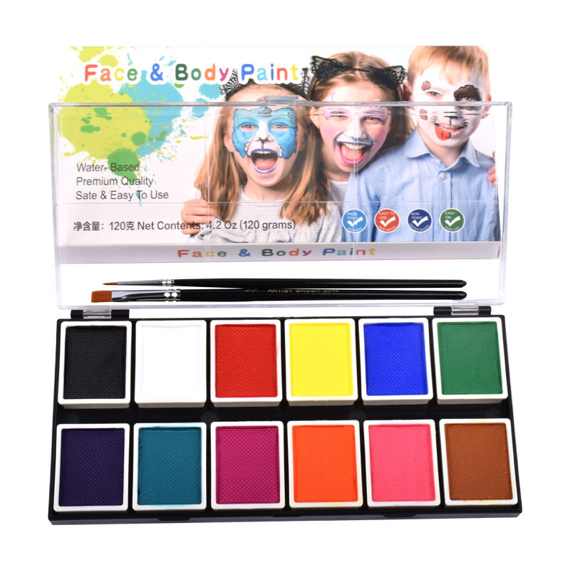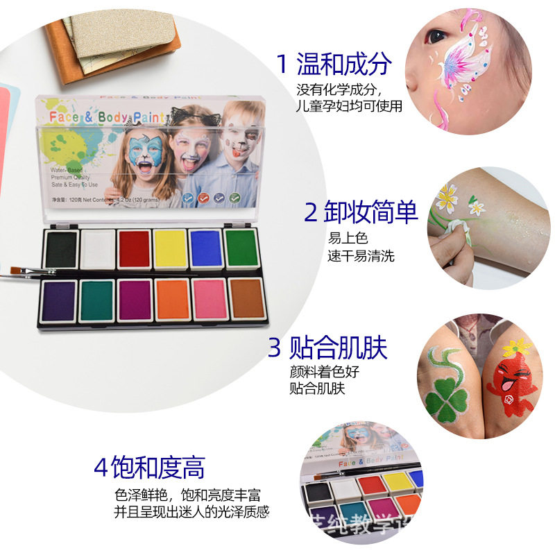 12色10克水溶性人体彩绘颜料脸部彩绘膏万圣节小丑面部彩妆彩绘
