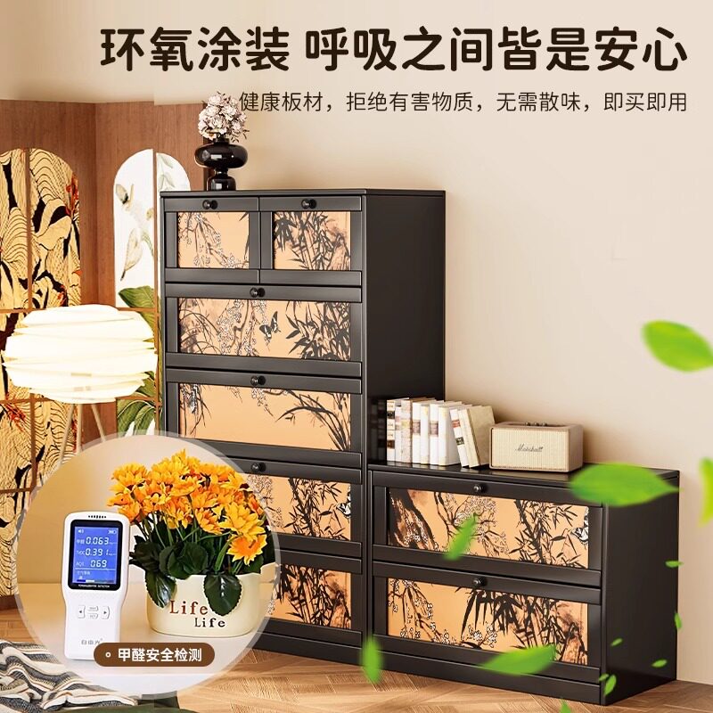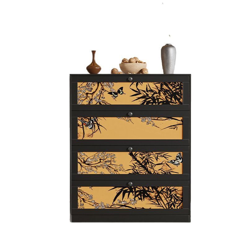 中古风印花钢制斗柜客厅边柜储物柜铁艺五斗柜卧室床尾抽屉收纳柜