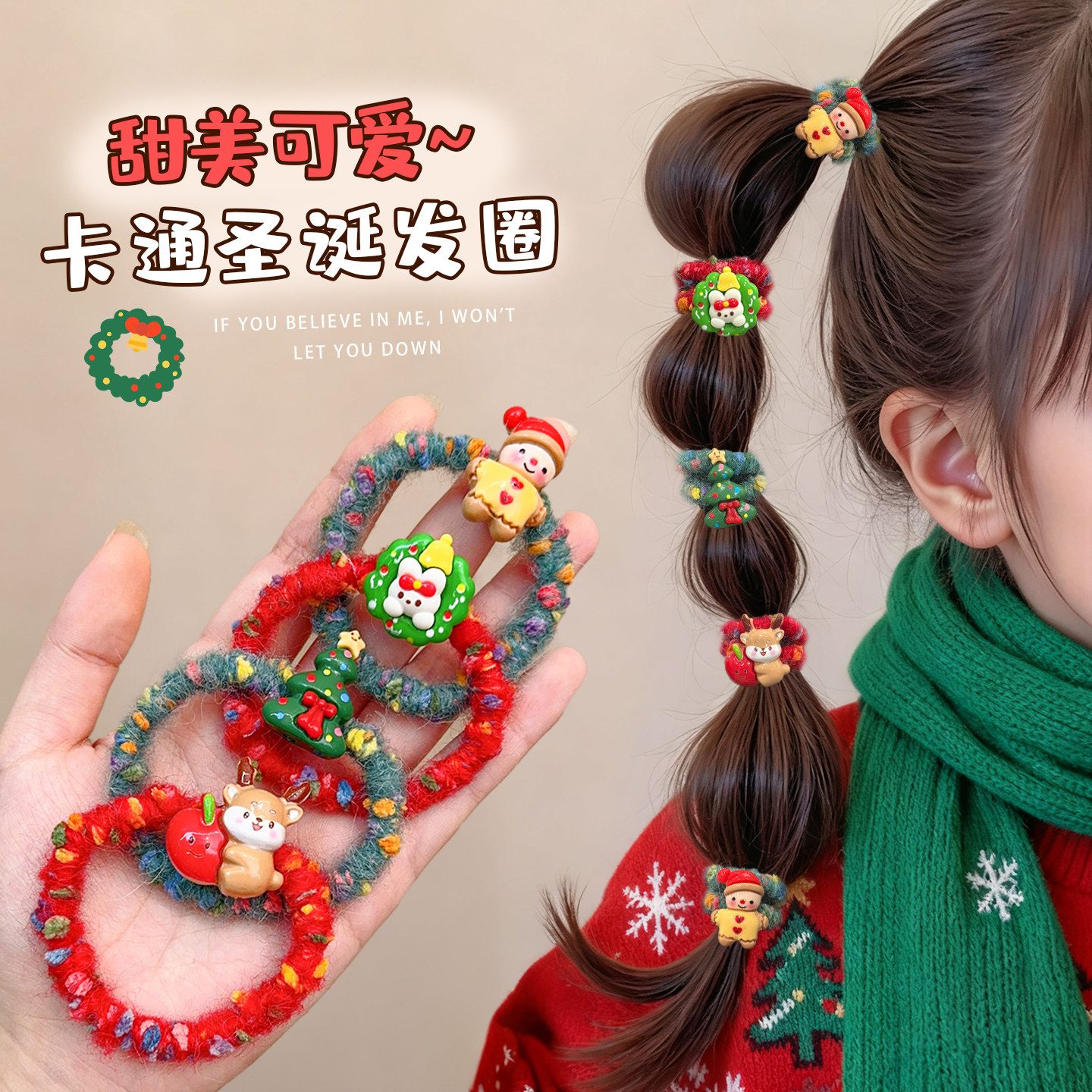 头饰儿童皮筋女扎头发圈可爱宝宝头绳不勒发无扎痕小女孩发绳圣诞