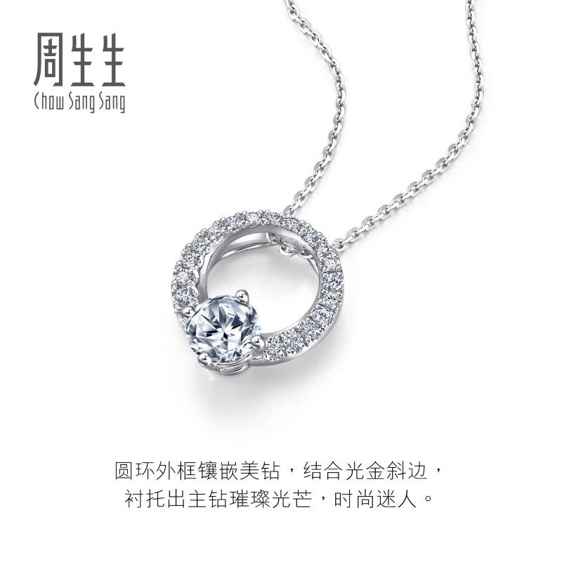 周生生钻之颂永恒之颂美人尖圆环钻石项链18K金套链93312U