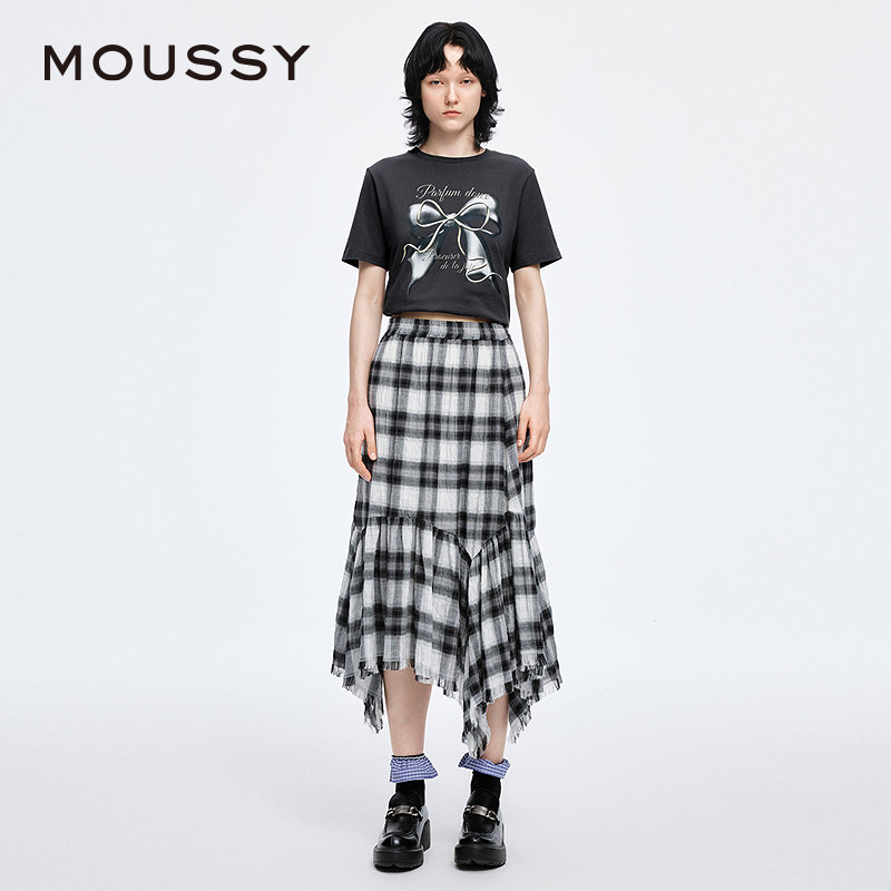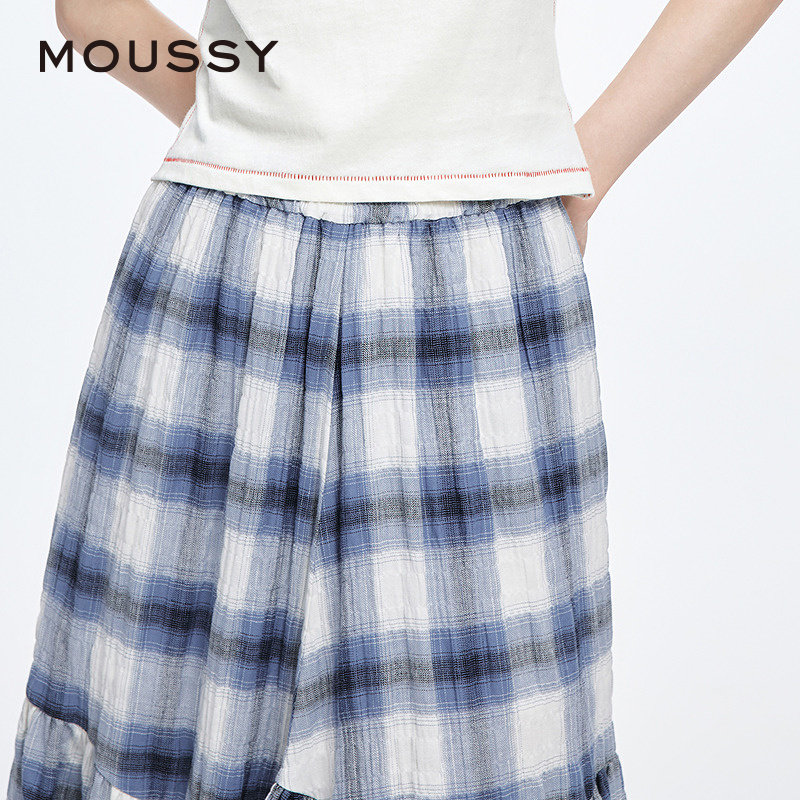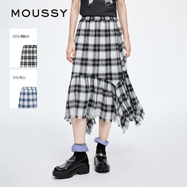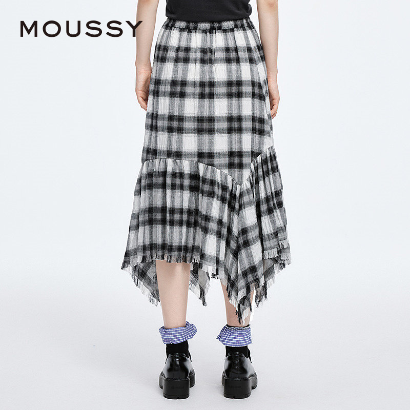 moussy 早春甜美日系格子松紧腰不规则半裙028IAX31-1251