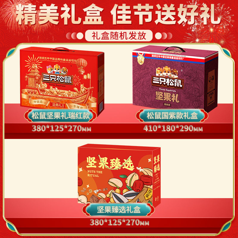 三只松鼠瑞红款13袋/2011g年货坚果礼盒送长辈健康零食大礼包送礼