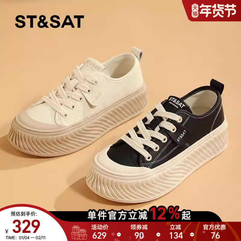 星期六真皮厚底板鞋女2025年秋新款休闲增高丑萌大头鞋松糕鞋百搭