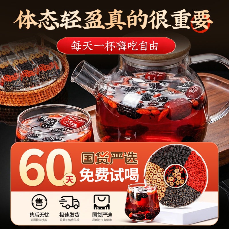 亚麻籽无花果黑豆枸杞桑葚种子循环补充生茶包黄体酮养生茶养雌茶