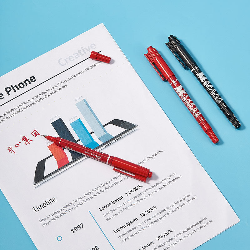 齐心 MK833 小双头记号笔 线幅0.5-1.5mm 黑