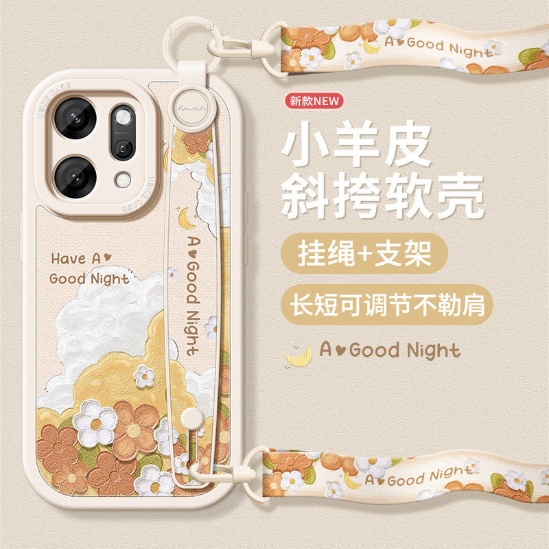 适用OPPOReno14Pro手机壳新款reno14全包防摔10挂绳11斜跨挎Reno8Pro女款reno13pro背带12腕带软壳油画世界