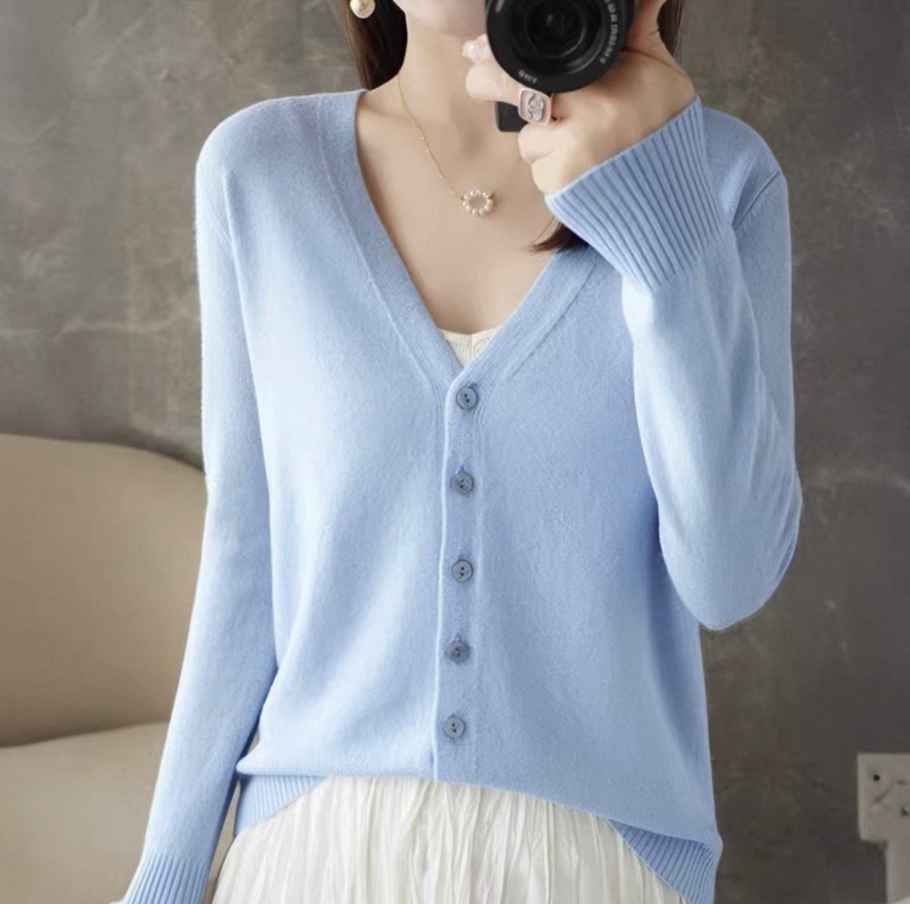 新款羊毛开衫外套女针织打底衫V领2025年春季羊绒外搭短款毛衣女