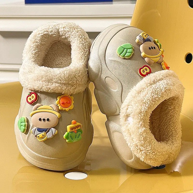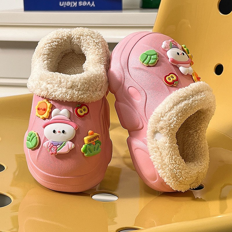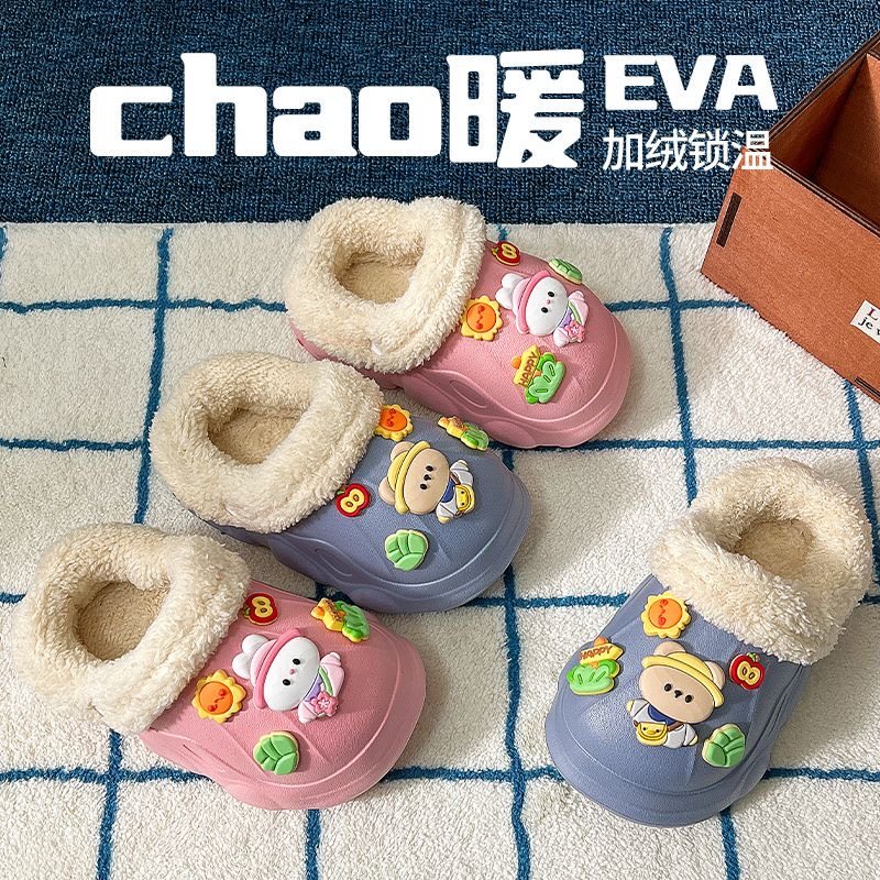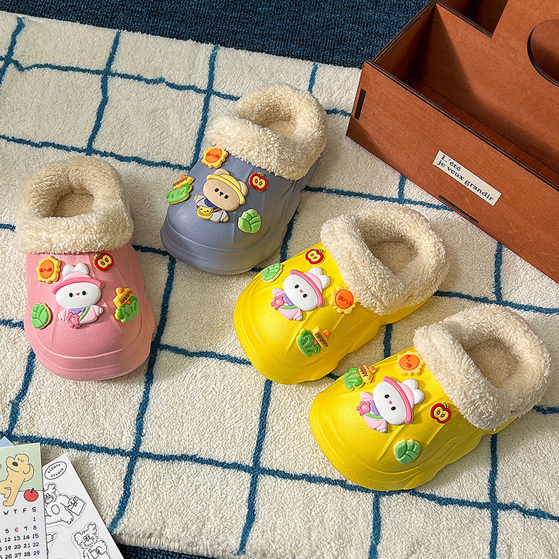 卡通棉拖鞋可爱趣玩派对防滑居家可外穿毛毛半包拖鞋秋冬2024新款