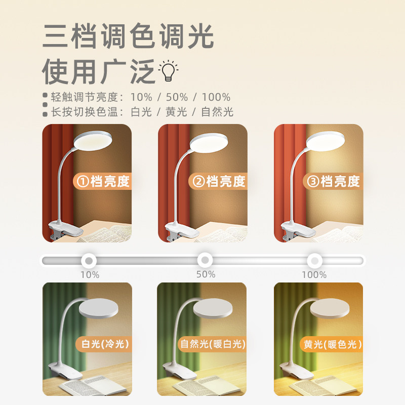 优乐明夹子可夹式充电台灯宿舍大学生阅读床头灯护眼学习专用卧室
