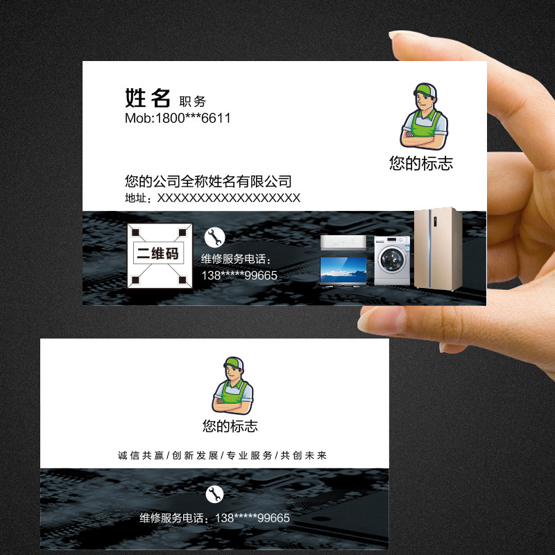 清洗家电维修名片制作空调安装广告贴纸I订做塑料防水名片复印圆
