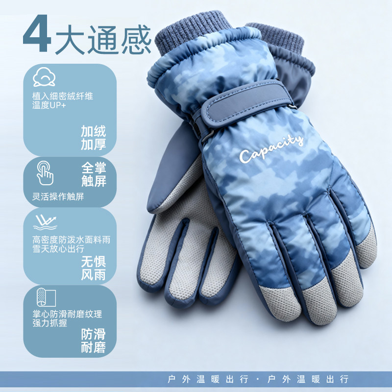 棉滑雪手套男女冬季防水触屏跑步运动骑行登山装备加绒厚保暖防风