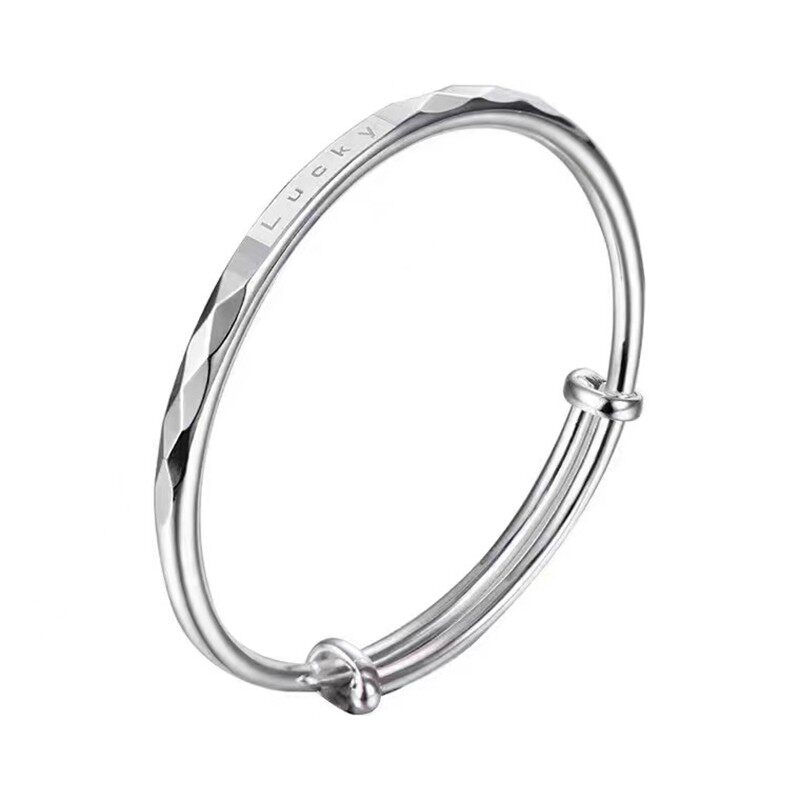 足银999手镯女款光面实心闭口拉丝传承古法纯银情侣手环手工定制
