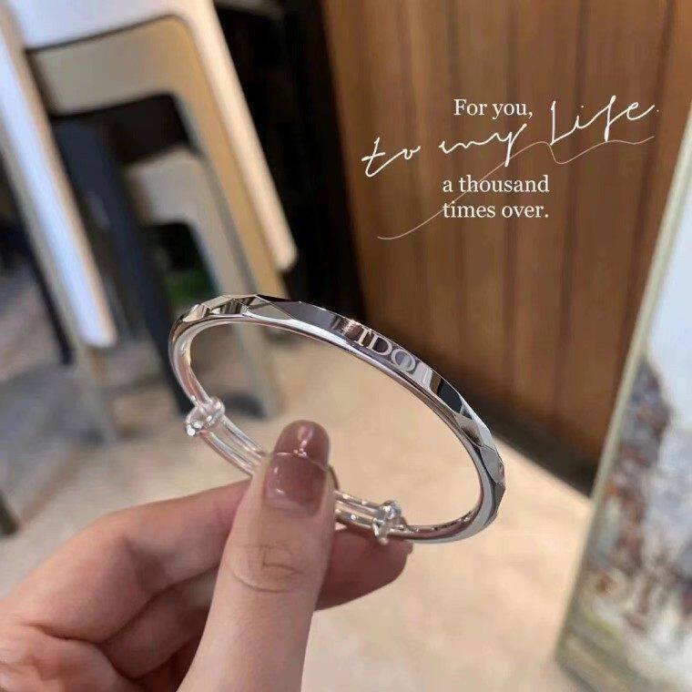 幂琳足银s999手镯纯银轻奢镯子女Lucky2026年竹节情侣款精致推拉