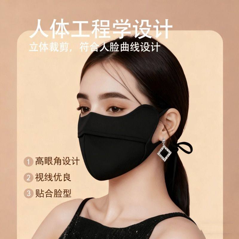蕉下防晒口罩腮红护眼角3d立体开车防紫外线女黑色夏冰丝遮阳面罩