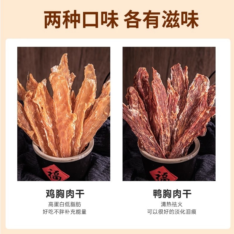 狗狗零食鸡胸肉片鸭肉干磨牙宠物增营养肥训练奖励鸡肉鸭肉片风干