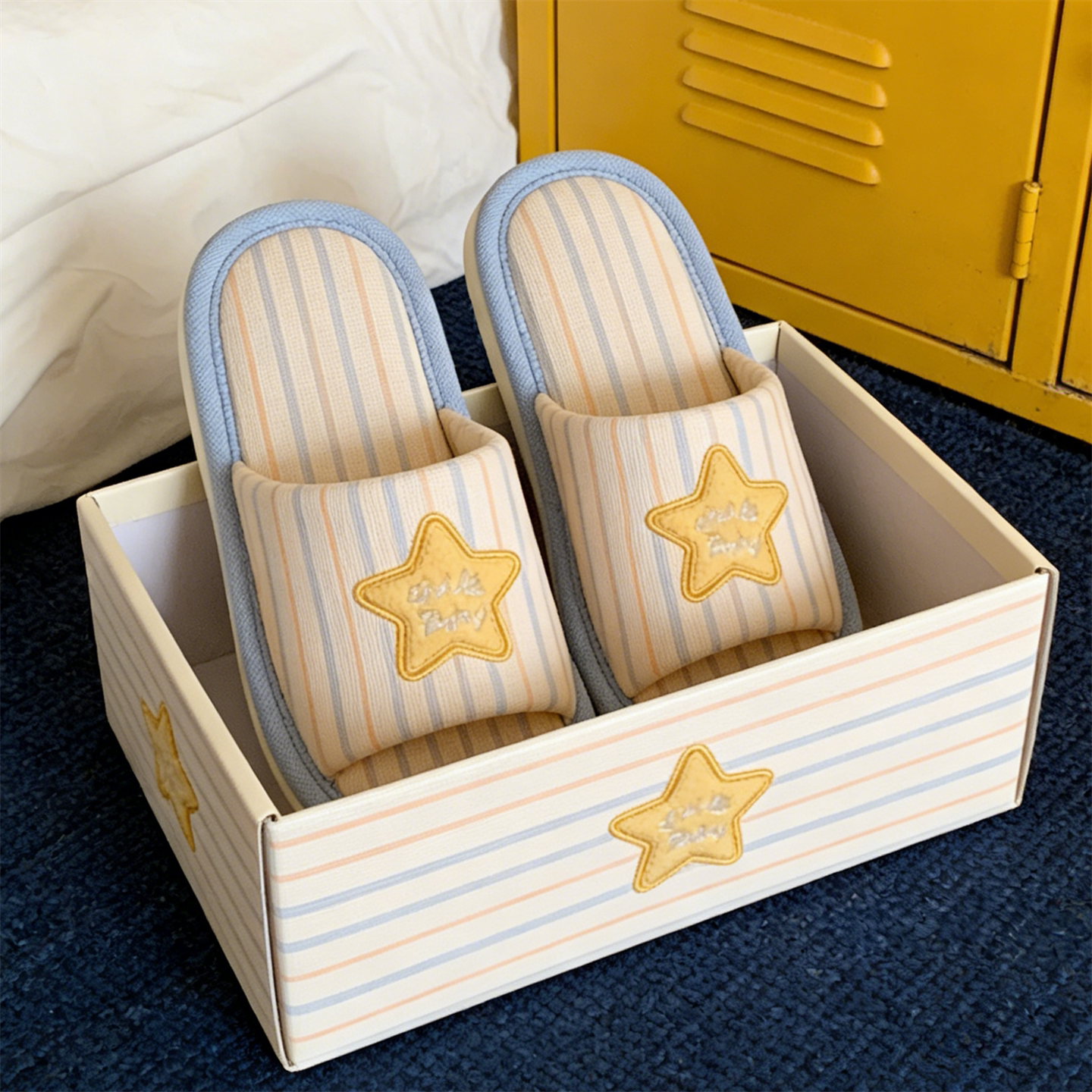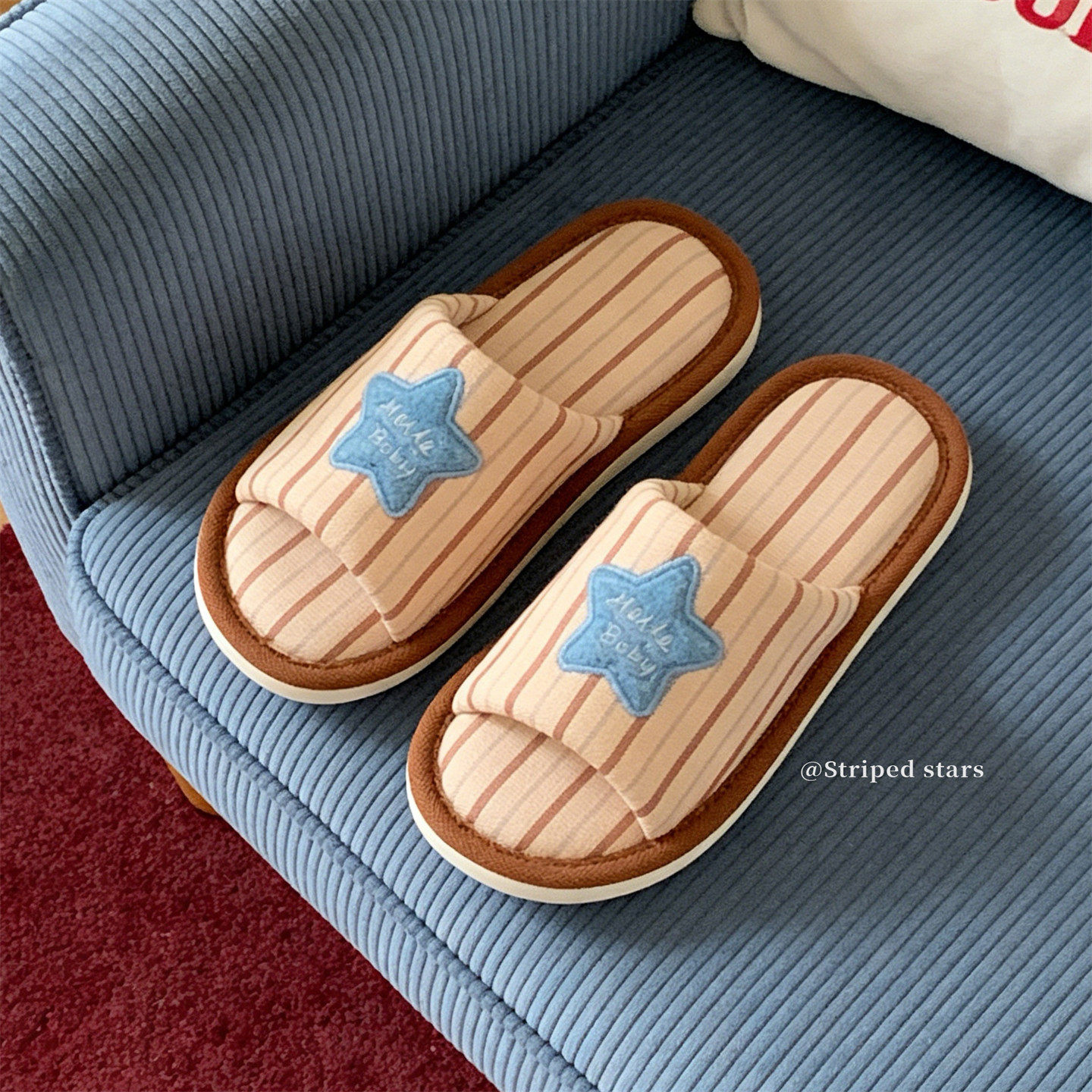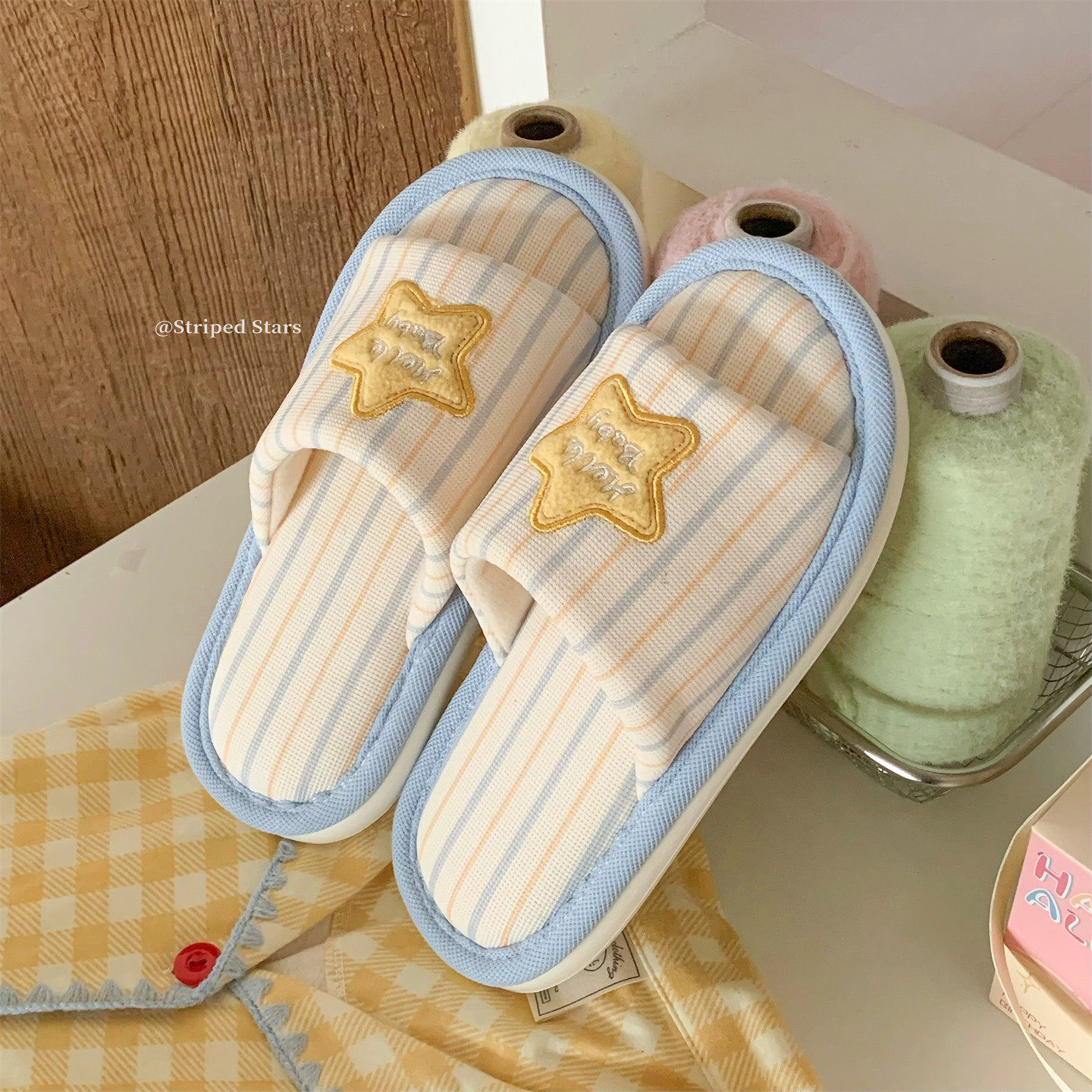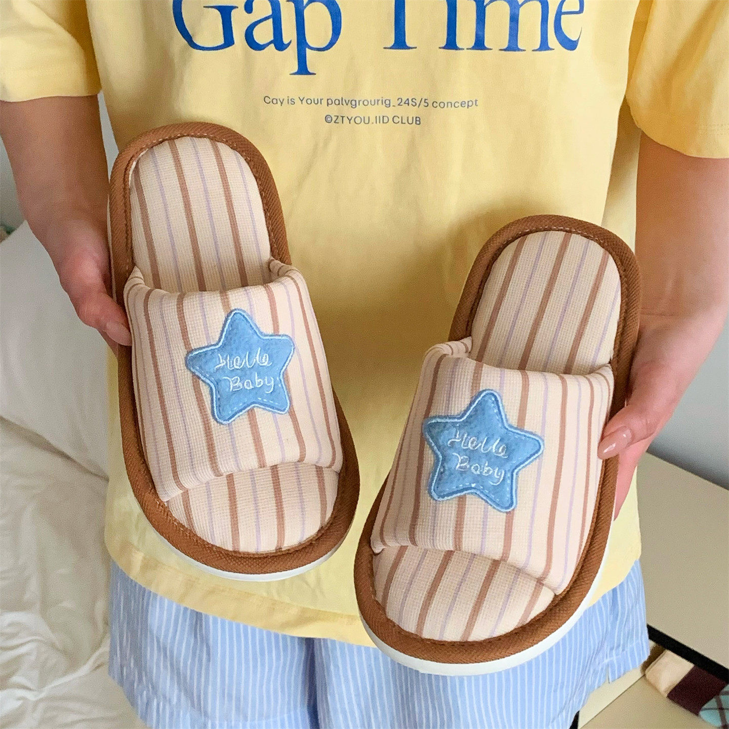 细细条 学生女防滑韩系星星竖纹棉麻拖鞋家居空调房春夏ins地板鞋