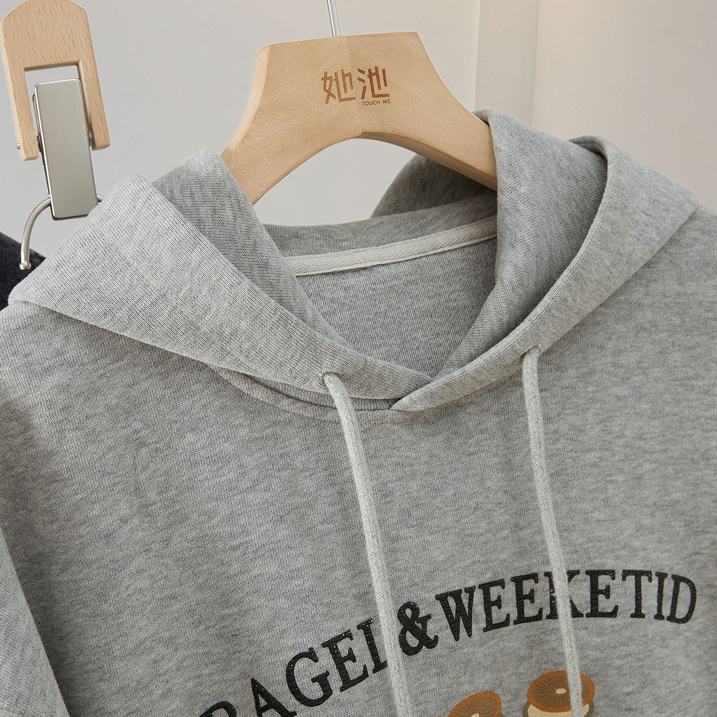 她池休闲风卫衣2025秋装新款女装抽绳连帽卡通印花长袖宽松款上衣