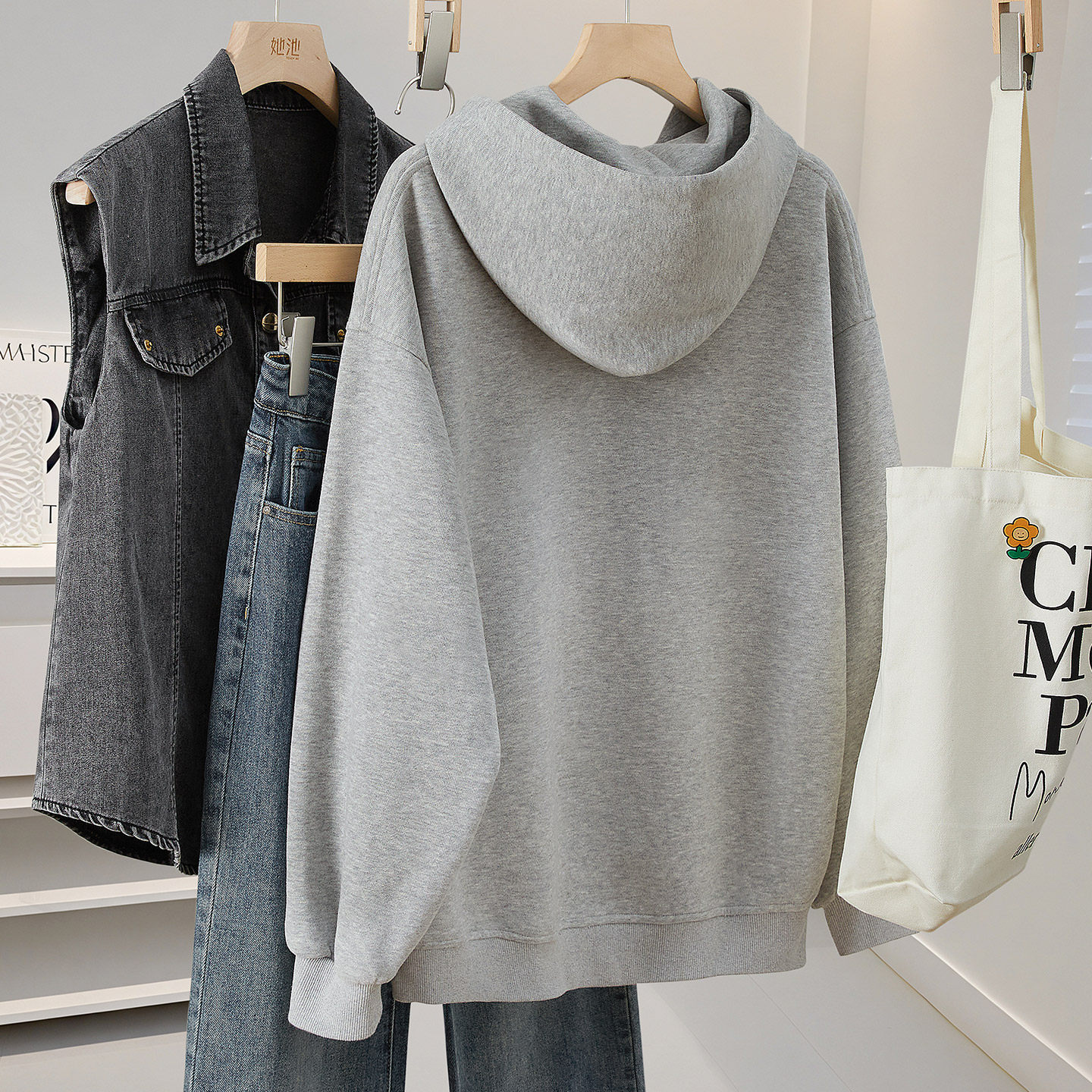 三福卫衣开衫2025新款秋季连帽情侣款外套宽松慵懒风灰色上衣女装