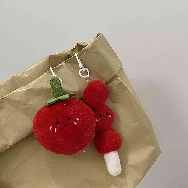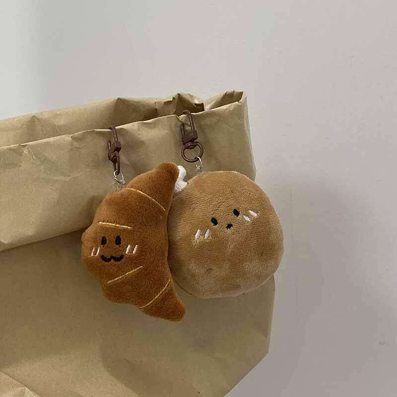 趣味食玩毛绒挂件四款组合可爱卡通牛角包柿子糖葫芦书包挂土豆