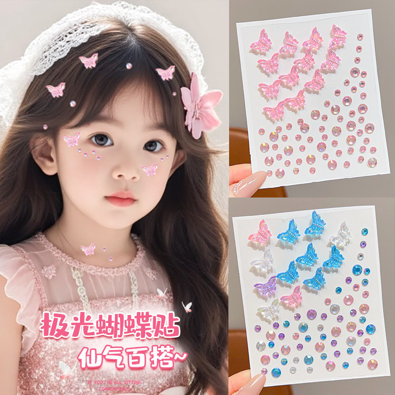 极光蝴蝶水钻贴纸成人免胶脸贴儿童妆容装饰品演唱会舞台表演立体钻石贴面部化妆舞会脸部妆容贴自粘亮片玩具